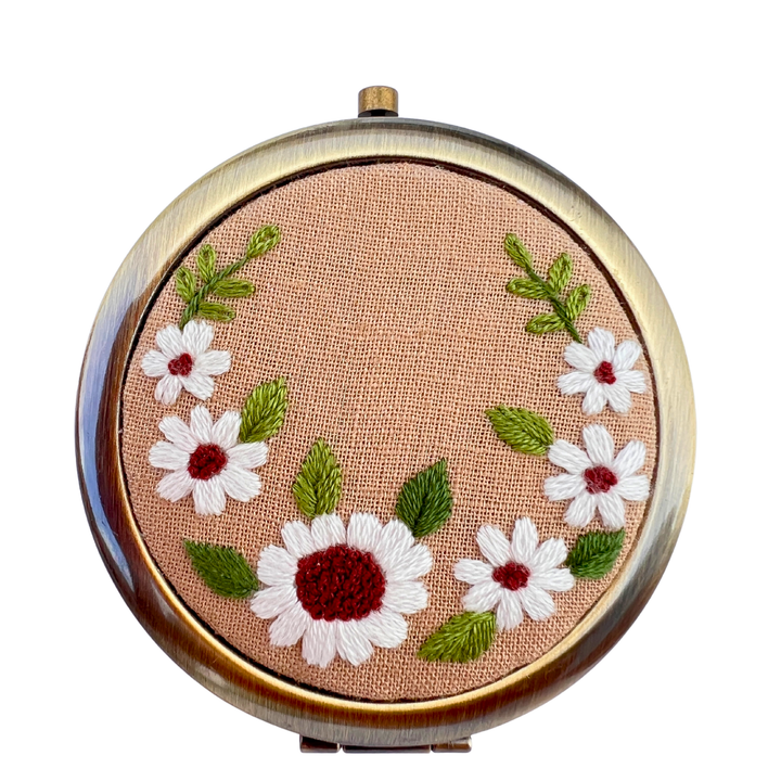 Personalized Embroidered pocket mirror hand made by Luxhama